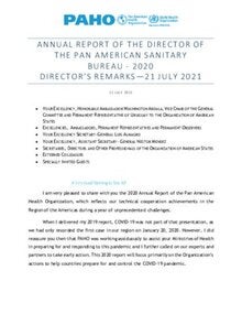I am very pleased to share with you the 2020 Annual Report of the Pan American Health Organization, which reflects our technical cooperation achievements in the Region of the Americas during a year of unprecedented challenges.