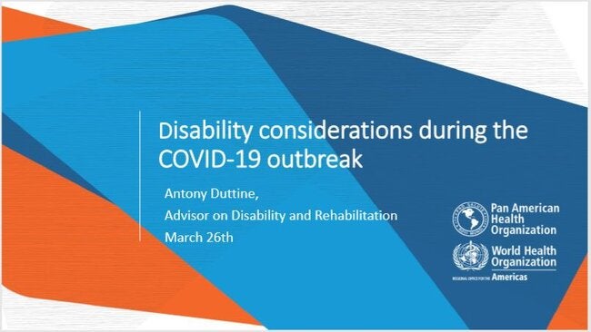 Coronavirus Disease (COVID-19) Coronavirus infections Health Emergencies and Disaster Response Disability Presentations Noncommunicable Diseases and Mental Health (NMH)