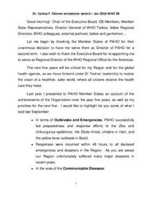 Dr. Carissa F. Etienne, acceptance speech, January 2018, 142nd Executive Board of WHO