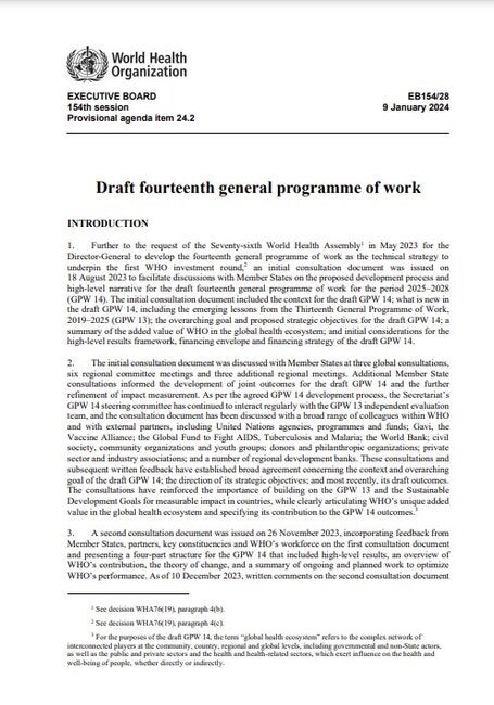 The aim of this consultation is to solicit perspectives from WHO Member States, partners, and key constituencies to inform further refinements to draft GPW 14 document.