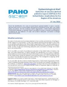 Epidemiological Alert: Detection of vaccine-derived poliovirus type 2 (VDPV2) in the United States: Implications for the Region of the Americas - 21 July 2022