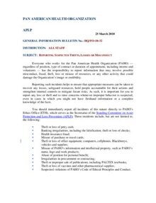 GENERAL INFORMATION BULLETIN No.: HQ/FO-10-32 DISTRIBUTION: ALL STAFF SUBJECT: REPORTING SUSPECTED THEFTS, LOSSES OR MISCONDUCT