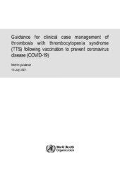 Guidance for clinical case management of thrombosis with thrombocytopenia syndrome (TTS) following vaccination to prevent coronavirus disease (COVID-19): interim guidance, 19 July 2021.
