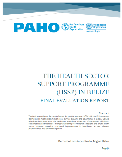 The Health Sector Support Programme (HSSP) (2018–2025) was established to enhance Belize's health system's resilience, service delivery, and governance. It aligns with the Belize Health Sector Strategic Plan (BHSSP) 2014–2024 and the PAHO/WHO Belize Country Cooperation Strategy (CCS) 2017–2021. Funded by the European Union (EU) and implemented by PAHO/WHO in collaboration with the Ministry of Health and Wellness (MoHW), the HSSP has evolved through an initial agreement and a subsequent amendment.