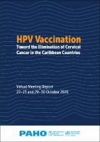 In October 2020, 30 participants and 14 panelists from the ministries of health from the Caribbean subregion, the Pan American Health Organization (PAHO), the World Health Organization, and various other institutions took part in a meeting on human papillomavirus (HPV) vaccination to end cervical cancer in the Caribbean countries. PAHO organized the meeting as a virtual event. This PAHO publication is the report of that meeting, whose sessions discussed strategies and shared experiences with the objective of eliminating cervical cancer in the Region of the Americas. Following the sequence of the sessions, the publication summarizes the speakers’ presentations and the subsequent discussions. The sessions focused on four main areas: updates on strategies for the regional and global elimination of cervical cancer: screening and treatment of cervical cancer; HPV vaccination; and impact of the HPV vaccine. The publication closes with the meeting’s closing considerations, which ranged from the importance of a collaborative approach and high vaccine coverage to considerations on COVID-19 and launch of the Global Strategy to Accelerate the Elimination of Cervical Cancer as a Public Health Problem.