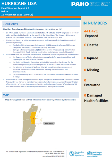 o The Belize District was severely impacted: 94,271 residents affected; 500 houses completely destroyed; 5,000 houses partially destroyed