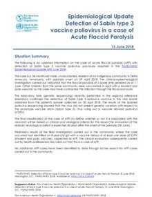 Epidemiological Update Detection of Sabin type 3 vaccine poliovirus in a case of Acute Flaccid Paralysis 15 June 2018