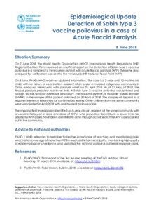Epidemiological Update Detection of Sabin type 3 vaccine poliovirus in a case of Acute Flaccid Paralysis 8 June 2018