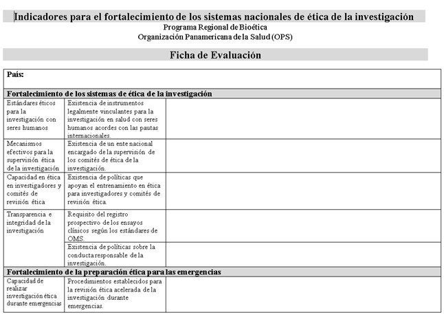 Indicators for strengthening national research ethics systems