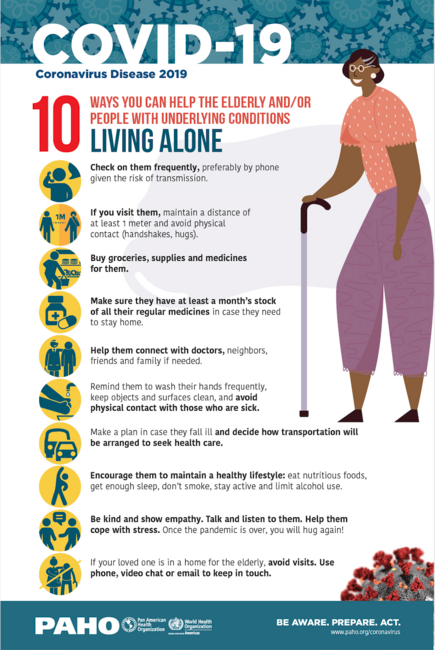 Infographic: COVID-19. Ways to help the elderly and/or people with underlying conditions living alone