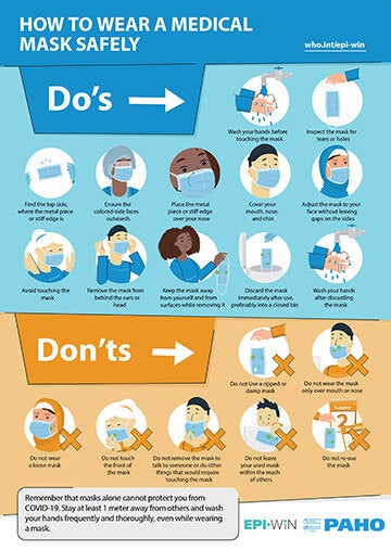 This is an infographic on the proper use of masks. How to put it on and take it off safely.