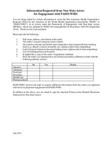 Information Requested from Non-State Actors for Engagement with PAHO/WHO