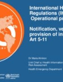 International Health Regulations (IHR) Operational processes Notification, verification and provision of information - Art 5-11