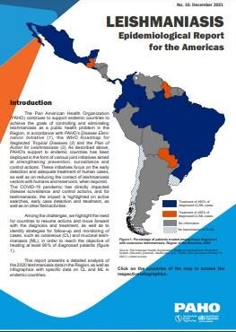 This report presents a detailed analysis of cutaneous, mucosal, and visceral leishmaniasis data in the Region of the Americas for 2020 and includes a series of infographics with specific data on cutaneous and mucosal leishmaniasis in endemic countries. As a result of the COVID-19 pandemic, active search activities, early detection and treatment of cases, as well as other field activities, have been reduced. Among the challenges facing the Region, we highlight the need for countries to resume activities and move forward with the diagnosis and treatment of cases of the different clinical forms of the disease. Furthermore, it is necessary to identify strategies for the follow-up and monitoring of cases, in order to achieve the targets of treating at least 90% of patients diagnosed with cutaneous and mucosal leishmaniasis, as well as reducing the lethality of visceral leishmaniasis to less than 50% in the Region.