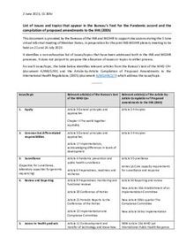 List of issues and topics that appear in the Bureau’s Text for the Pandemic accord and the compilation of proposed amendments to the IHR (2005)