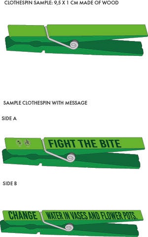 By one side (A) it is the call to action of the slogan: "Fight the Bite" and the PAHO isotypes in black, and by the other side there is one of this reminders.