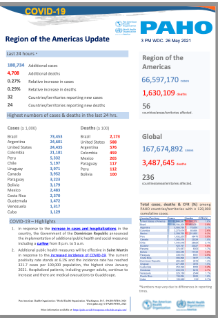 PAHO COVID-19 Daily Update: 26 May, 2021