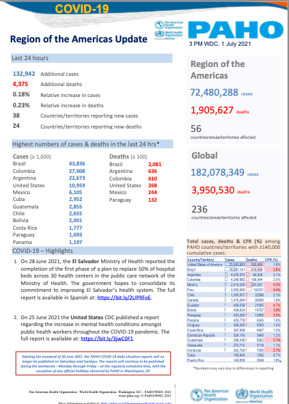 PAHO Daily COVID-19 Update: 1 July, 2021