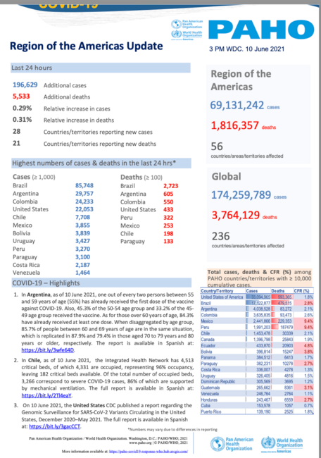 PAHO Daily COVID-19 Update: 10 June, 2021