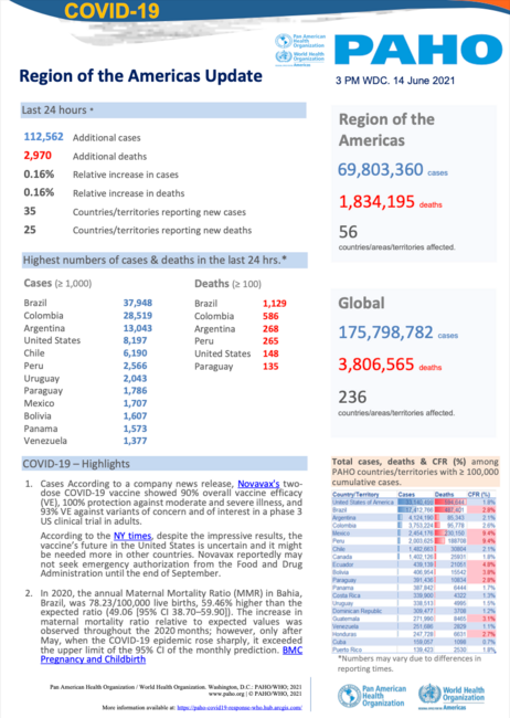 PAHO Daily COVID-19 Update: 14 June, 2021