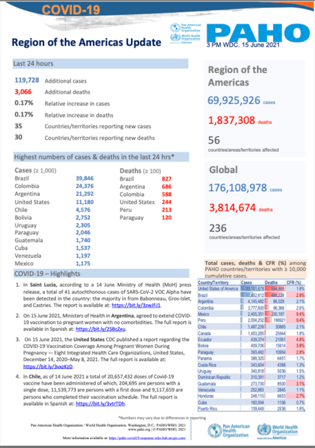 PAHO Daily COVID-19 Update: 15 June, 2021