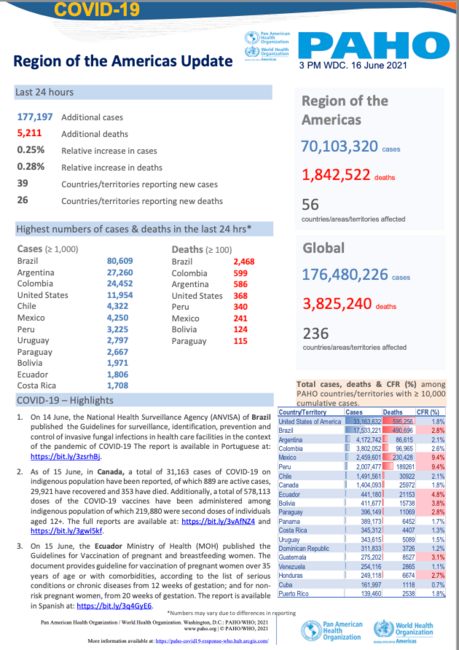 PAHO Daily COVID-19 Update: 16 June, 2021