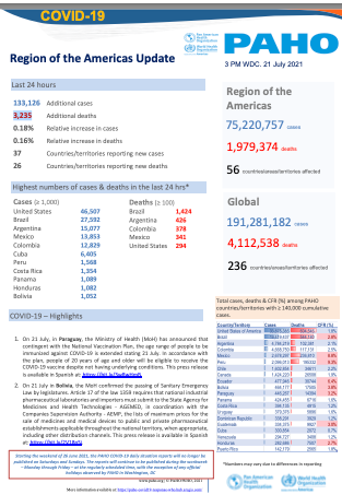 PAHO Daily COVID-19 Update: 21 July 2021