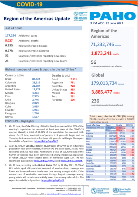 PAHO Daily COVID-19 Update: 23 June, 2021