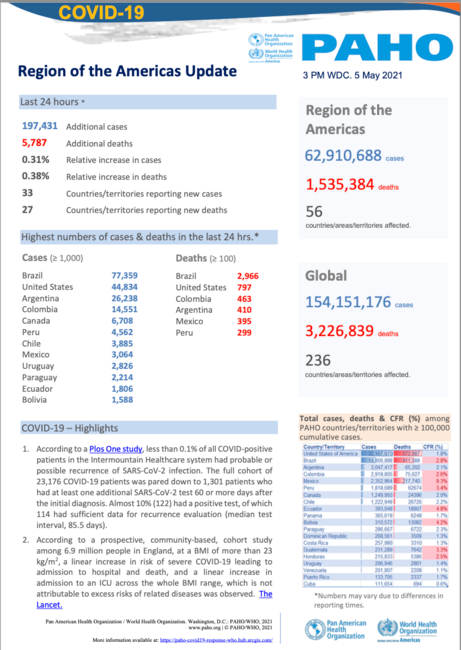 PAHO Daily COVID-19 Update: 5 May, 2021