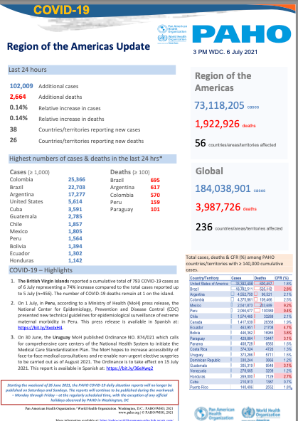 PAHO Daily COVID-19 Update: 6 July, 2021