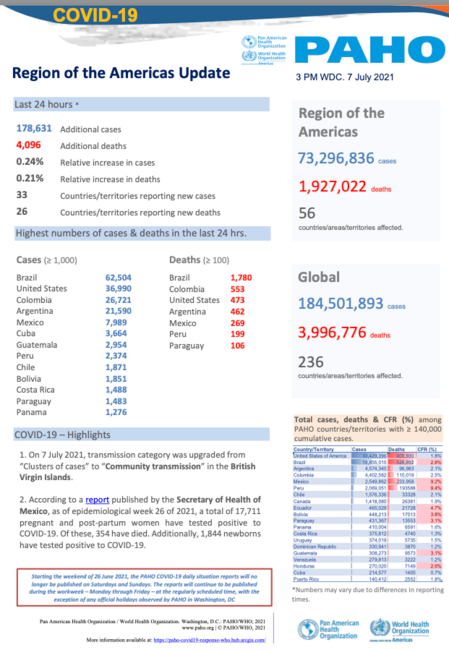 PAHO Daily COVID-19 Update: 7 July, 2021