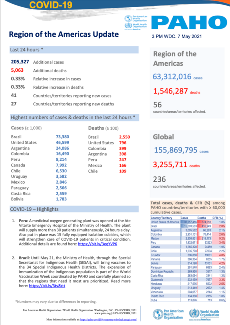 PAHO Daily COVID-19 Update: 7 May, 2021