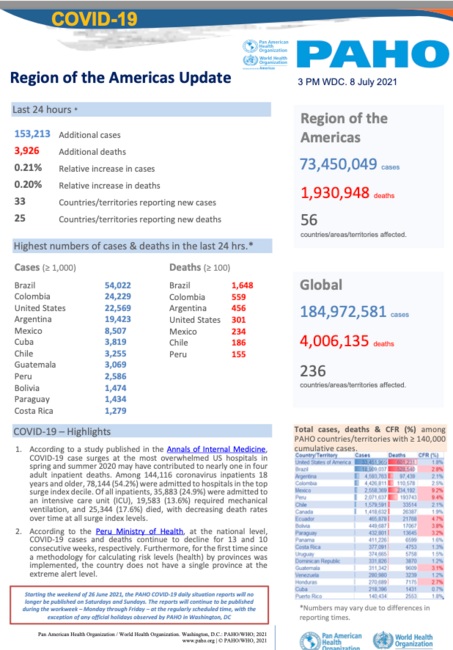 PAHO Daily COVID-19 Update: 8 July, 2021