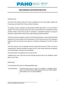 IntroductionThis PAHO Data Protection Policy (the “Policy”) establishes the rules and principles relating to the Processing by and within PAHO of Personal Data of individuals. The collection, analysis, publication and dissemination of health-related data is a core part of PAHO’s mandate. This may also include the need to store and/or share (transferring or receiving) Personal Data including sensitive medical data and data of vulnerable or marginalized individuals and groups of individuals, including children, which require careful handling and particular attention. This Policy considers the regulatory evolution in the field of data protection, as well as the Personal Data Protection and Privacy Principles of the United Nations (“UN”) Privacy Policy Group (“PPG”) adopted in September 2018 and endorsed by the High-Level Committee of Management (“HLCM”) in October 2018. This Policy should be read in conjunction with other existing internal policies of PAHO, and may be complemented by Standard Operating Procedures (SOPs) or other policies that will provide guidance on its implementation, supervision and accountability. This Policy will also be evaluated and may revised over time. Capitalized terms used in this Policy have the meanings ascribed to them in the “Definitions” section below or in the Policy. All requests from Data Subjects must be submitted by completing the following form. |