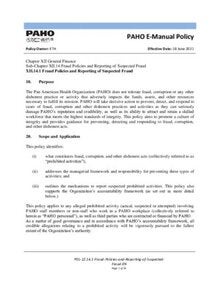 PAHO Policy on Fraud Policies and Reporting of Suspected Fraud