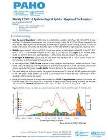 The overall weekly case notification rate for the region of the Americas was 53.8 cases per 100,000 population during EW 16 (49.5 the previous week). Between EW 16 and 15, the 14-day COVID-19 death rate was 8.8 deaths per 1 million population (10.5 the previous two weeks).
