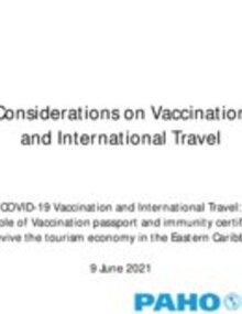 This presentation for the PAHO/WHO ECC Office hosted webinar on COVID-19 Vaccination and International Travel: the role of Vaccination passport and immunity certificate to revive the tourism economy in the Eastern Caribbean, was delivered by Dr. Roberta Andraghetti, Regional Advisor, International Health Regulations (IHR), PAHO/WHO.