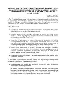 Proposal from the Co-Facilitators from Norway and Mexico to re-organize the current elements of Article 9, based on comments from Member States at the "Pilot" informal consultations. 14 and 15 June