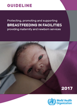 This guideline from the World Health Organization provides global, evidence-informed recommendations on protection, promotion, and support of optimal breastfeeding in facilities providing maternity and newborn services, as a public health intervention. It is intended to contribute to discussions among stakeholders when selecting or prioritizing appropriate actions in their efforts to achieve the Sustainable Development Goals and the global targets for 2025 as put forward in the Comprehensive implementation plan on maternal, infant and young child nutrition, endorsed by the Sixty-fifth World Health Assembly in 2012, in resolution WHA65.6, the Global strategy for women’s, children’s, and adolescents’ health (2016–2030), and the Global Strategy for infant and young child feeding.