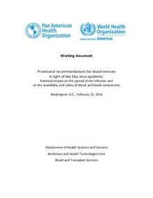 Provisional recommendations for blood services in light of the Zika virus epidemic: Potential impact on the spread of the infection and on the availability and safety of blood and blood components