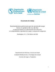 Recomendaciones preliminares para los servicios de sangre frente a la epidemia del virus del Zika (Spanish only)