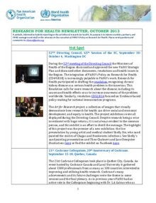 Research for Health Newsletter, October 2013