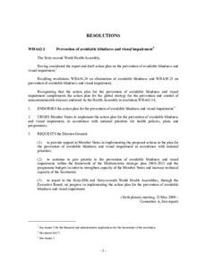 Resolution adopted in 2009 whose objectives are to eliminate new cases of blindness and avoidable visual disability, including morbidity caused by onchocerciasis.