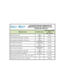 Expanded Program on Immunization immunoglobulin and tuberculin prices for 2019.