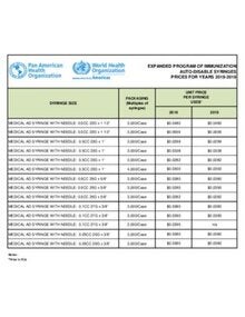 Revolving Fund Syringe Prices, 2018-2019