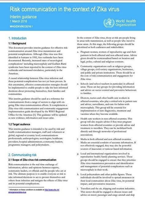 Risk communication in the context of Zika virus Interim guidance; 2016