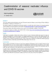 Vaccination programmes against COVID-19 and seasonal influenza are currently being implemented in parallel in many countries. Administration of both vaccines during the same visit has potential advantages. This document presents the evidence related to coadministration of Covid-19 and influenza vaccines and the interim guidance.