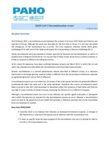 SARS-CoV-2 Recombination event between the variants of concern (VOC) Delta and Omicron (17 March 2022)