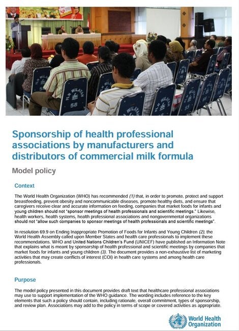 Sponsorship of health professional associations by manufacturers and distributors of commercial milk formula: model policy
