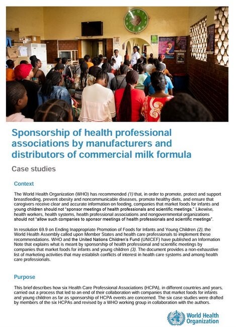 Sponsorship of health professional associations by manufacturers and distributors of commercial milk formula: case studies